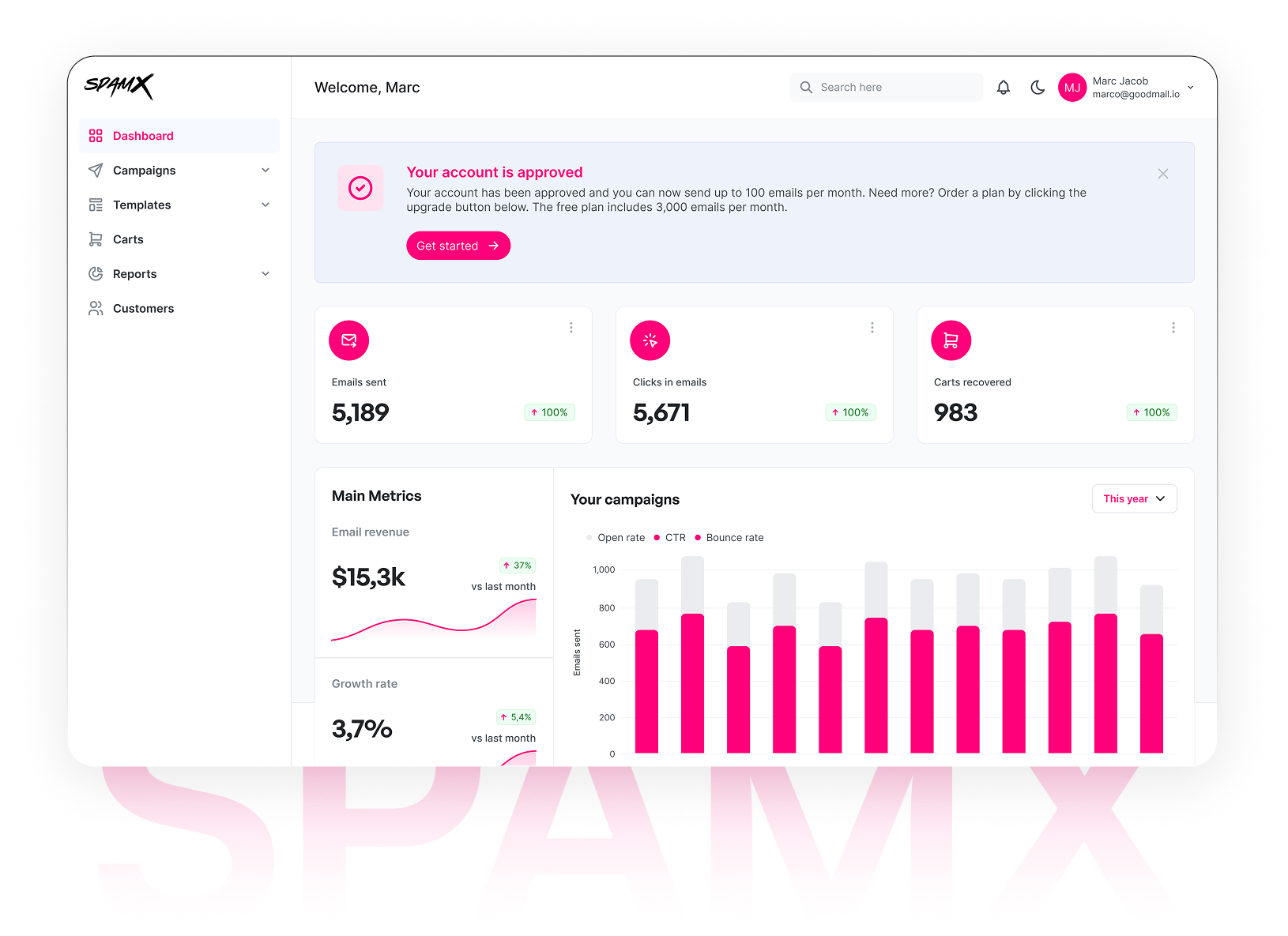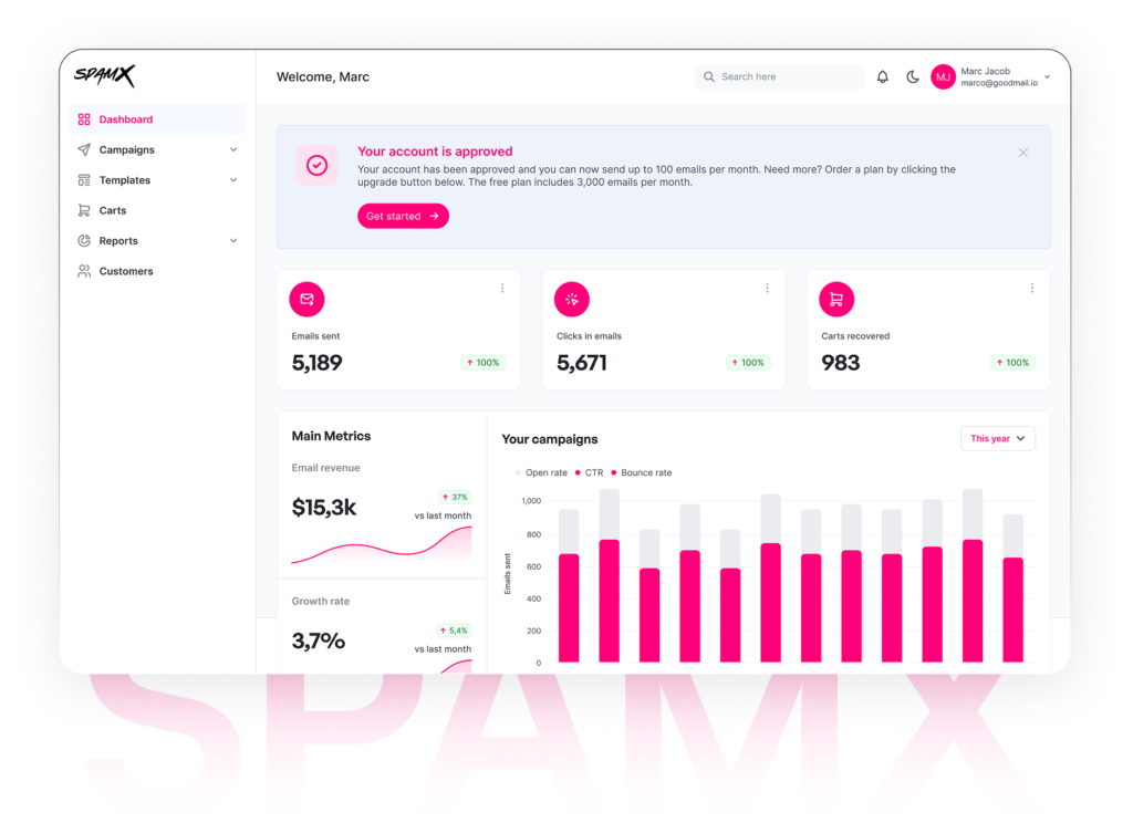 SpamX is an all-in-one email deliverability solution that uses sophisticated algorithms to increase open and click rates, improve domain reputation, and maximize email engagement.