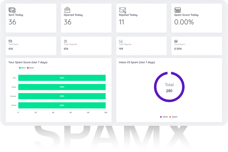 Using real human interactions, AI-powered optimization, and personalized warm-up sequences, SpamX builds trust with ISPs, enhances domain reputation, and ensures maximum inbox placement.